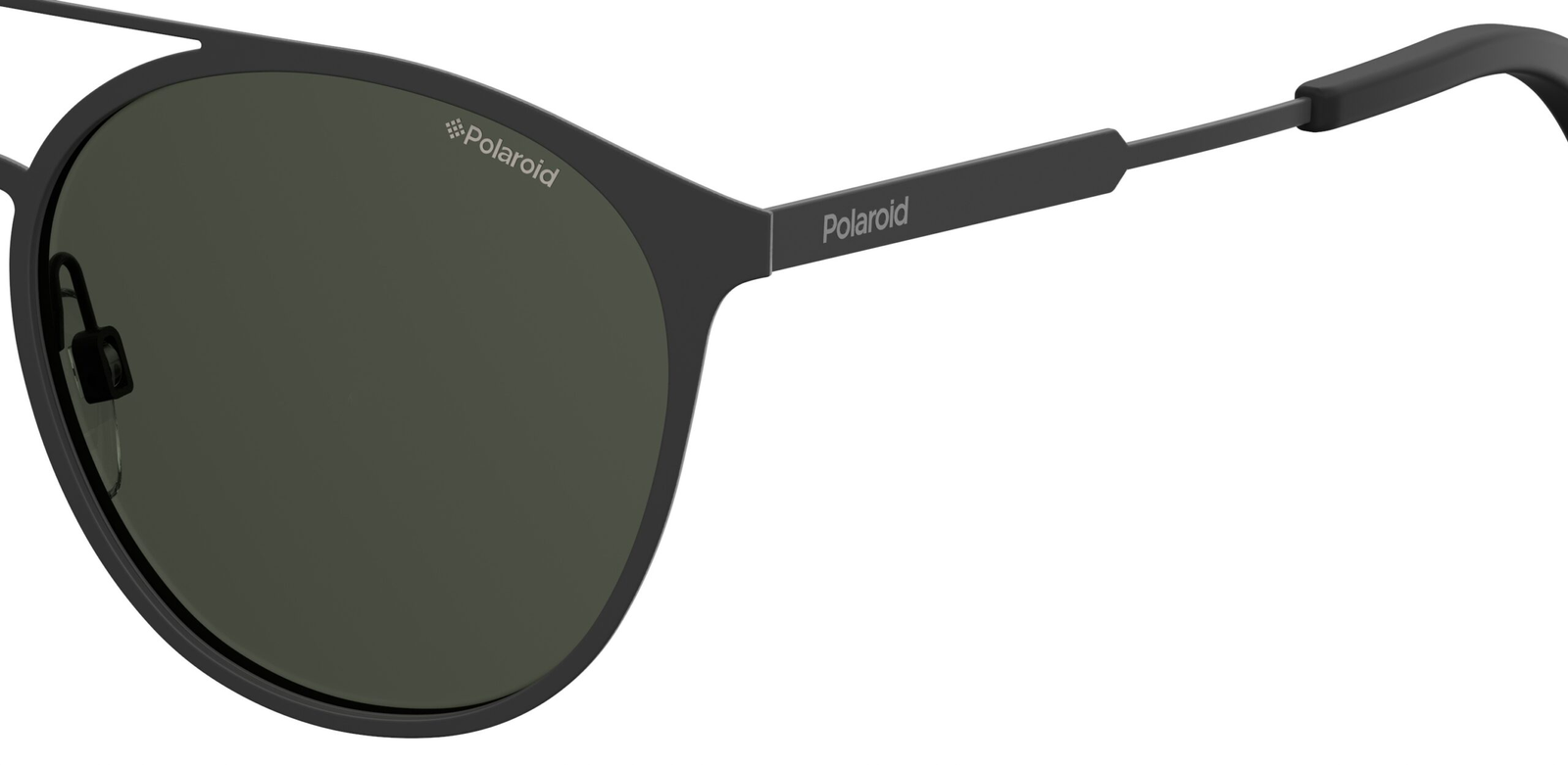 - العدسات: العدسات ذات لون رمادي داكن وتوفر حماية ممتازة من أشعة الشمس، كما يظهر على العدسة اليمنى شعار “Polaroid” بأحرف صغيرة.